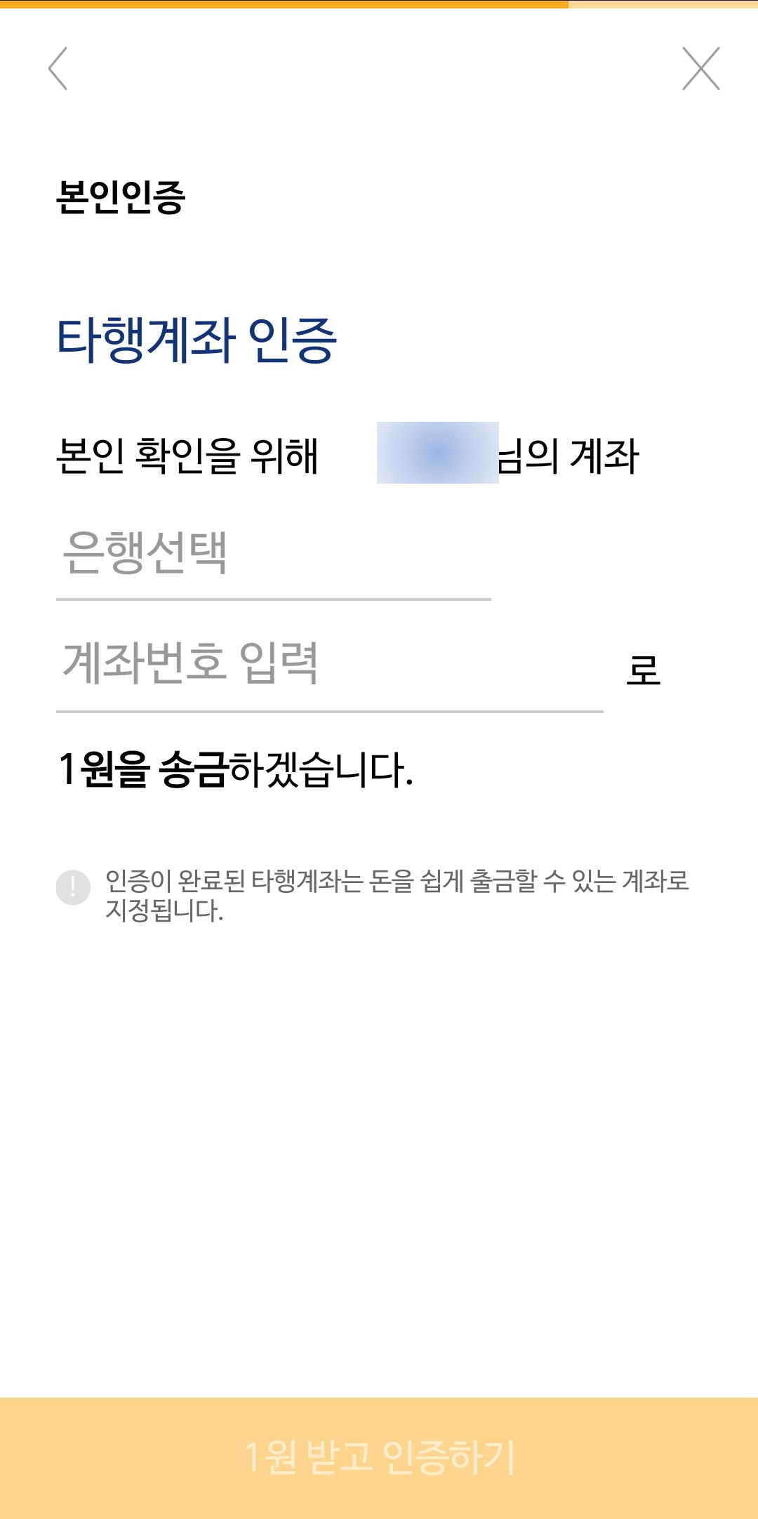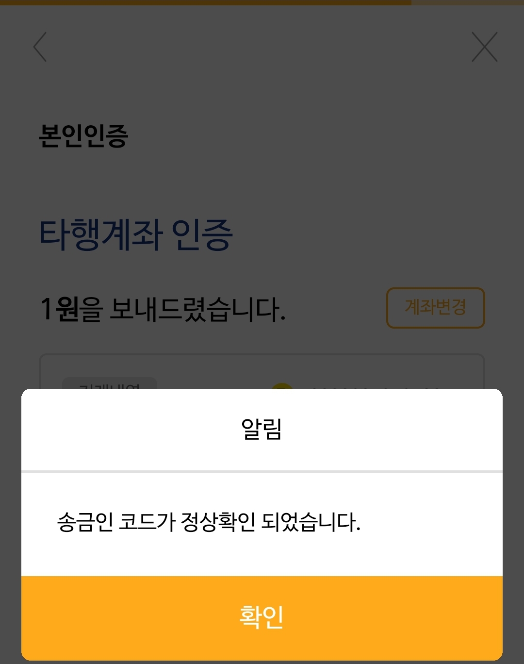 그리고나서 타금융기관을 로그인해서 입금자명을 확인하고, 해당 숫자를 입력해주시면 최종 타행계좌인증이 마무리가 됩니다.