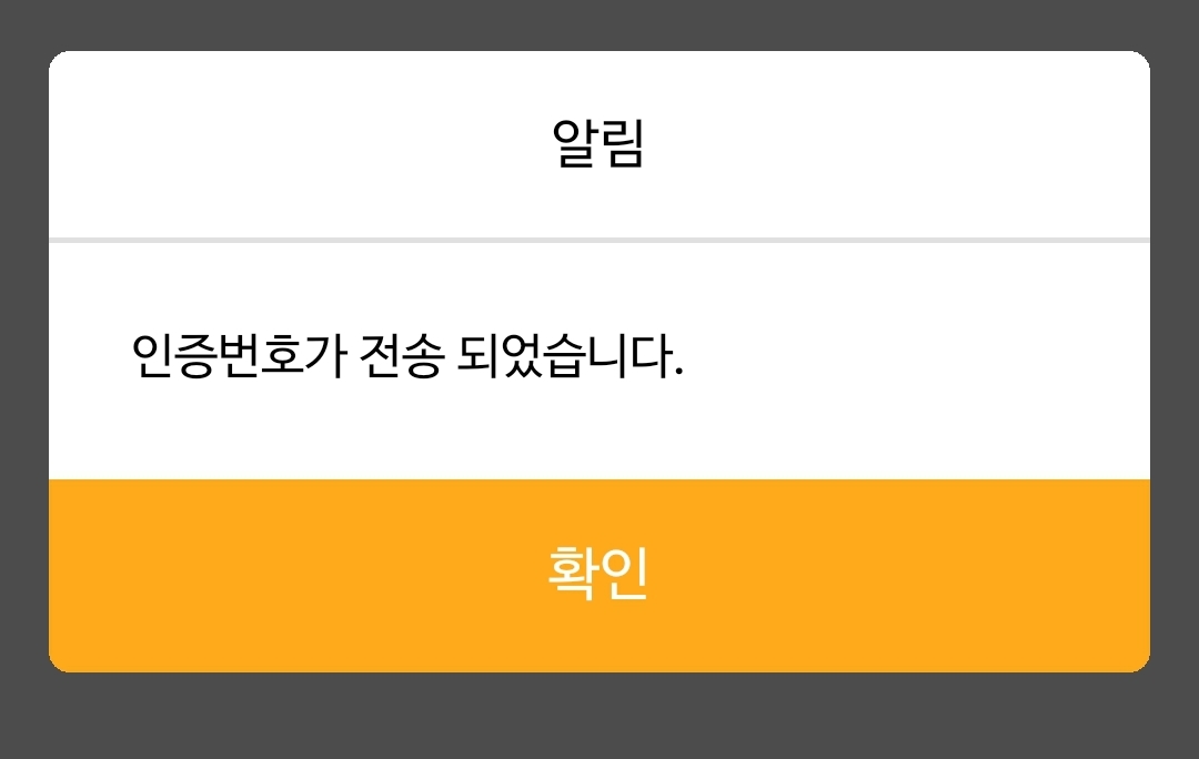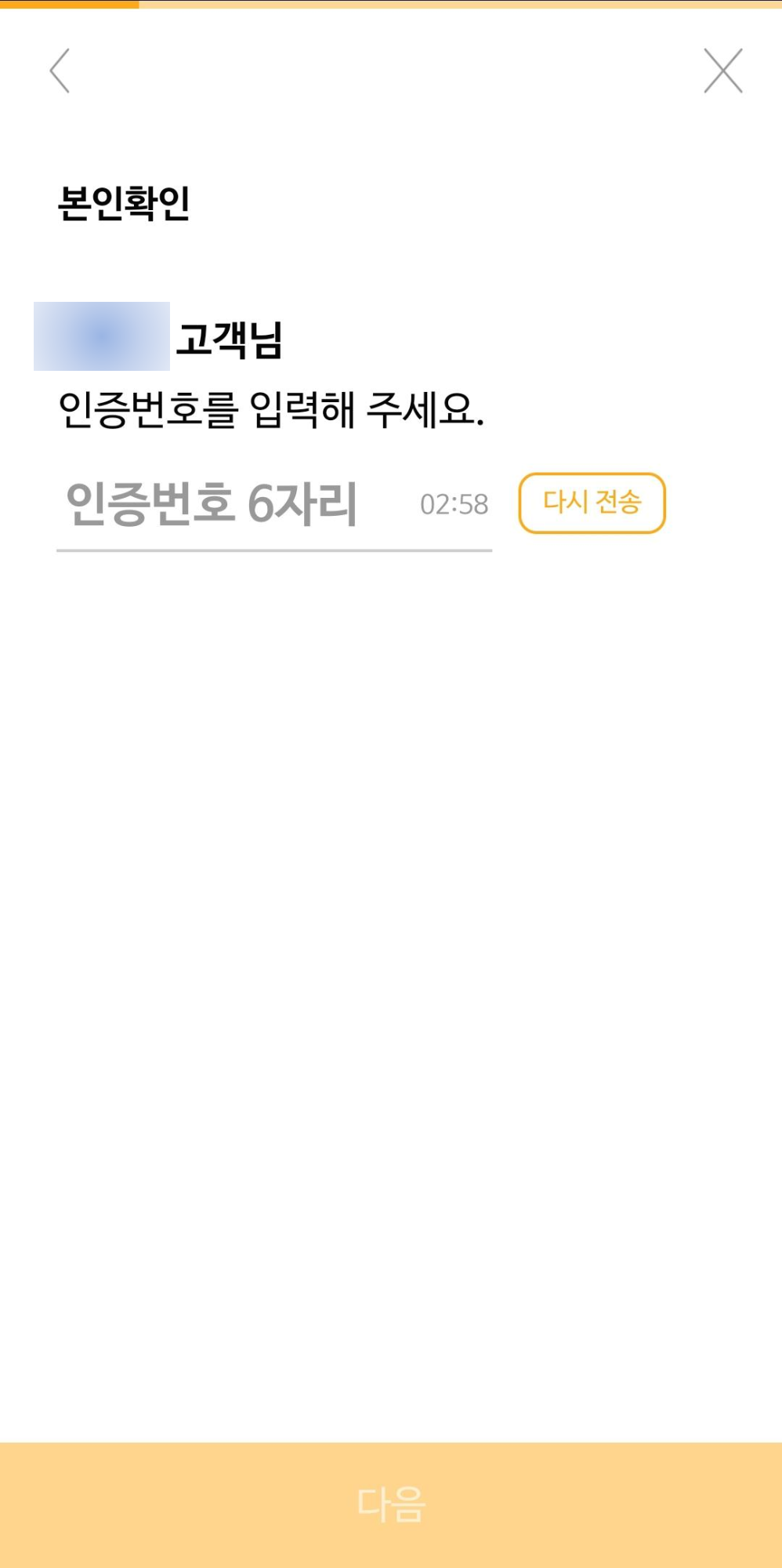 인증번호가 전송되고, 휴대폰 인증번호 4자리를 입력해서 본인인증을 합니다.