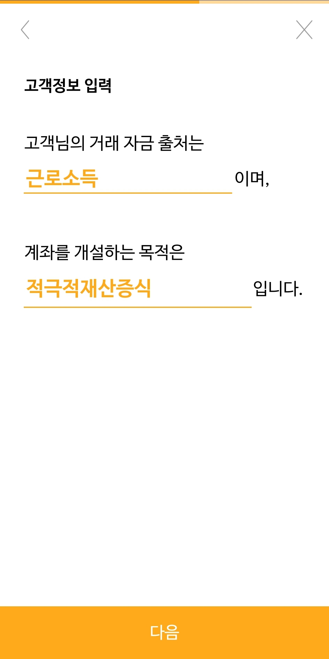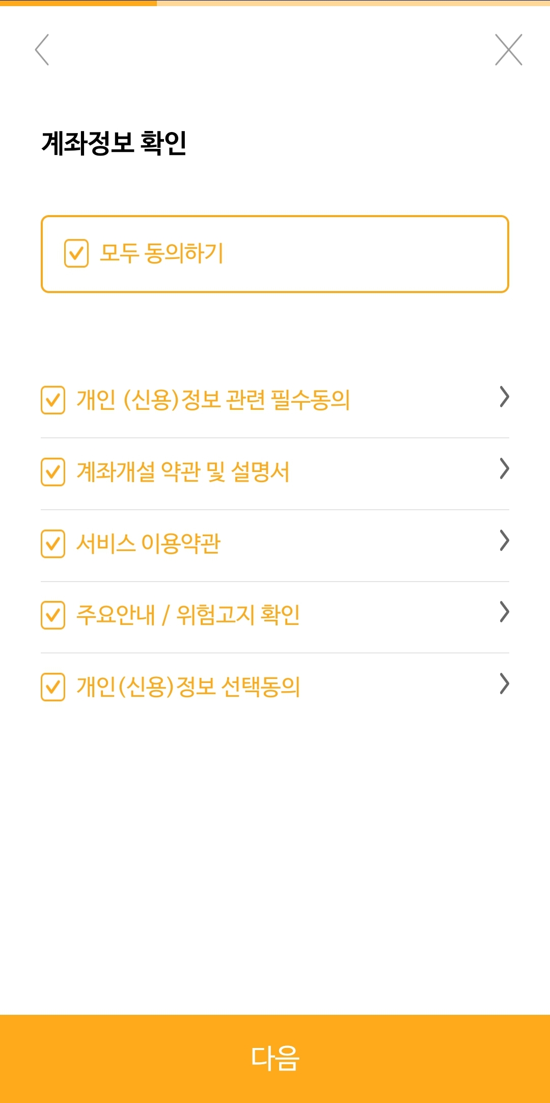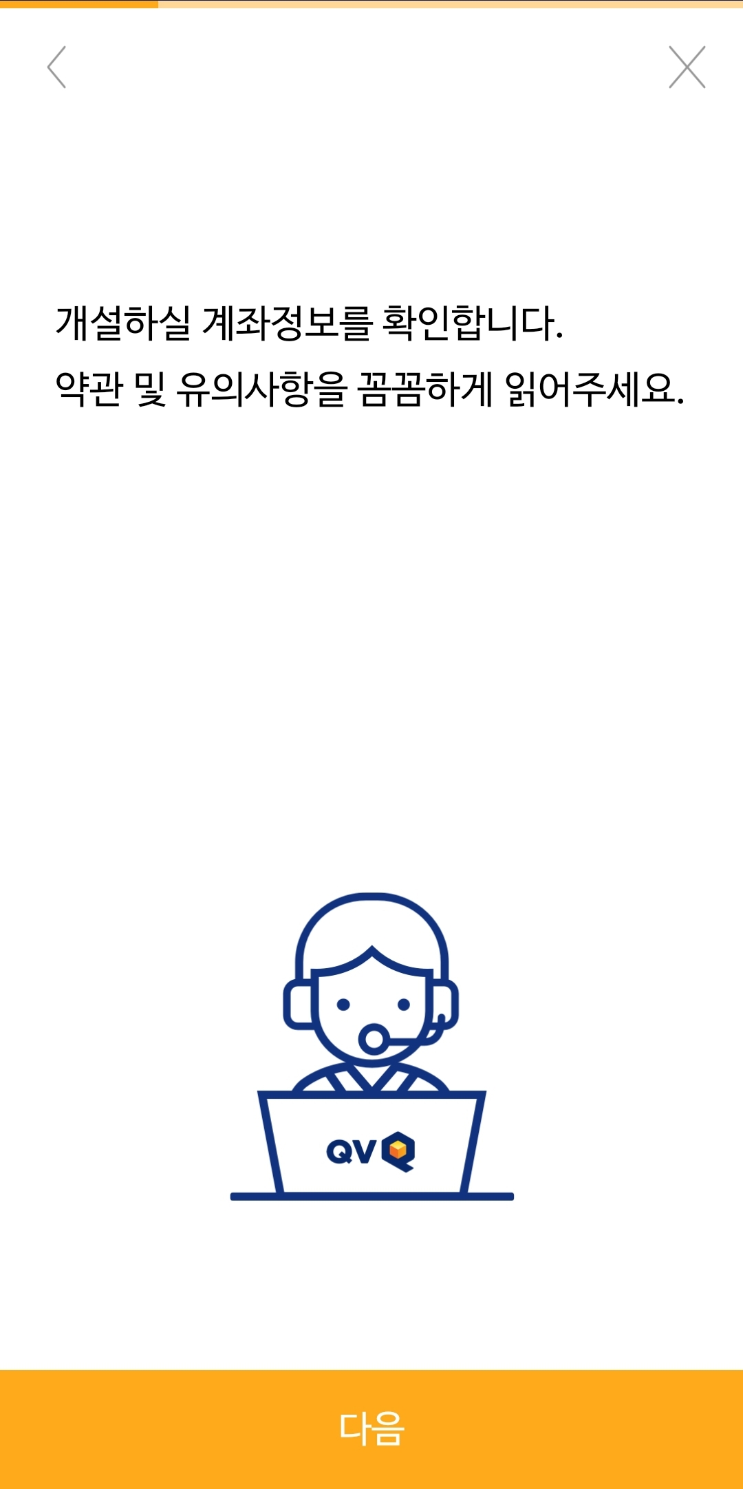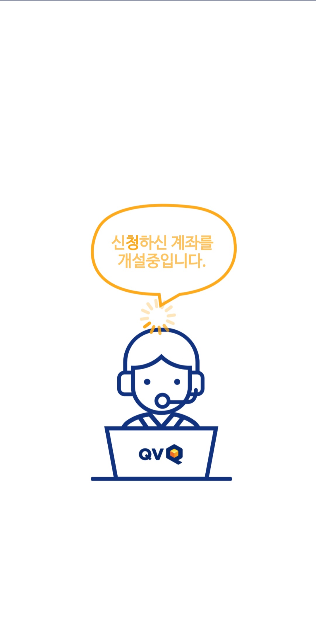 본인확인 업무를 수행중입니다. 문구가 뜨고 다음단계로 넘어가서 계설하실 계좌정보를 확인하고, 약관 및 유의사항을 확인 하는 단계입니다.