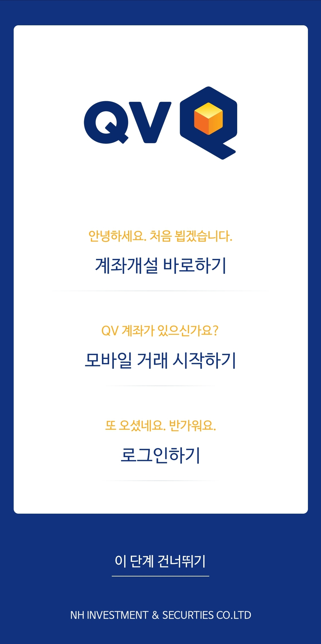 먼저 위와 같이 NH투자증권 QV라고 되어있는 어플을 다운받습니다.