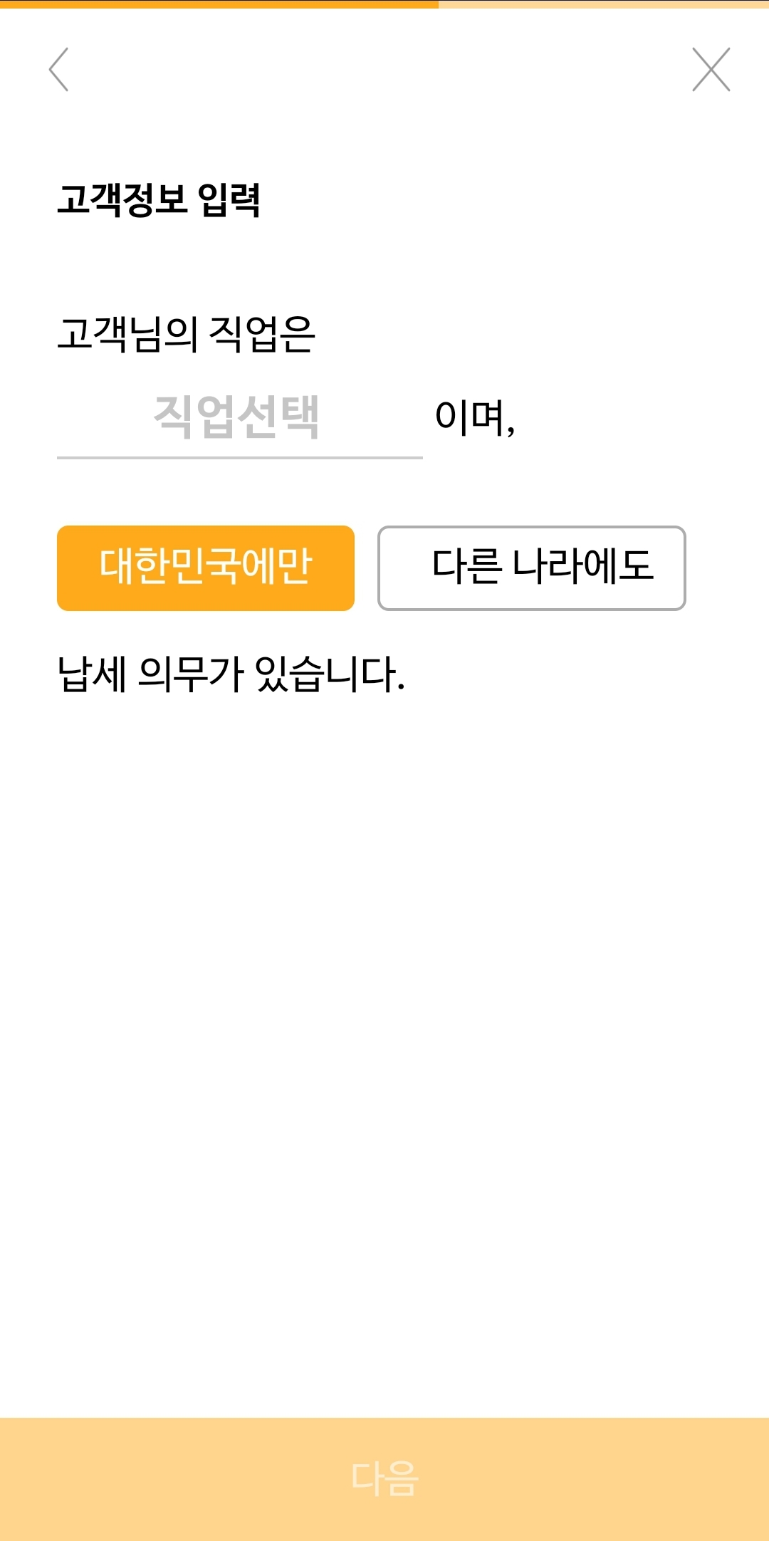 저는 알림방법의 설정은 이메일로 수신하여 확인하는 방법과, 알림톡으로 전달받는 방법을 선택하였습니다. 다음으로 직업과 납세의무를 선택하고요. 자금출처와 계좌개설 목적을 선택합니다.