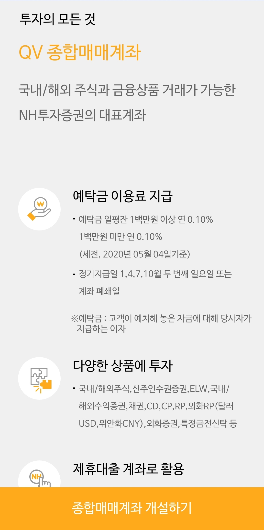 처음으로 NH투자증권에서 주식투자를 시작하시는 분들을 위해 NH투자증권의 대표 어플 QV에서 신규계좌개설 방법을 올리도록 하겠습니다.