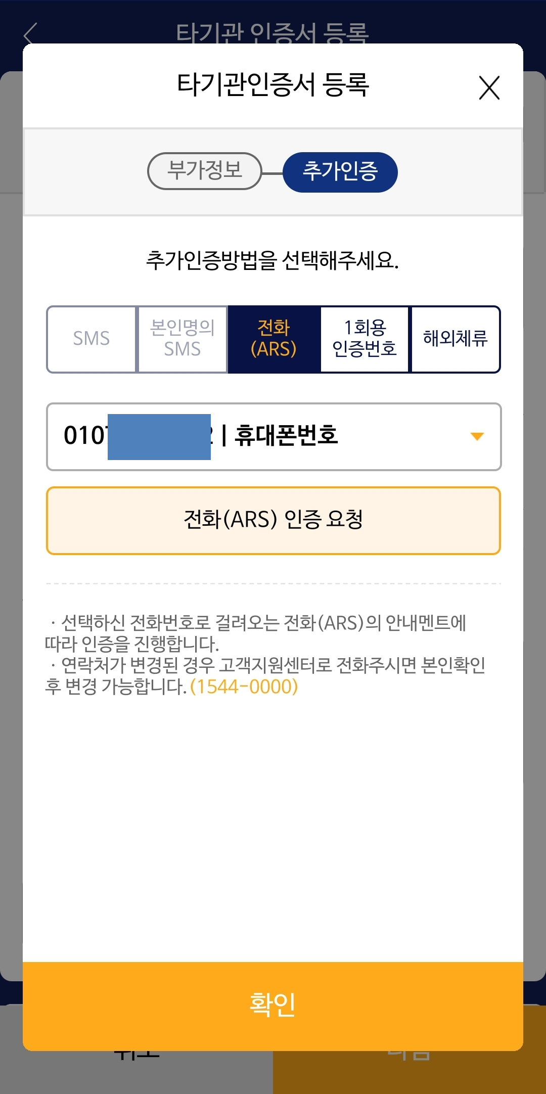 마지막 추가인증으로 전화ARS를 하시면 되는데요. 그러면 휴대폰으로 전화가 와서 인증을 하시면 됩니다.