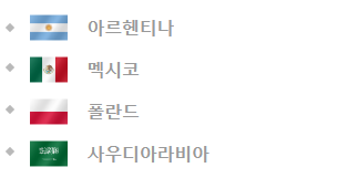 아르헨티아, 멕시코, 폴란드, 사우디아라비아가 C조인데요. 남미의 아르헨티나와 멕시코가 한조로 되어있는데 매우 특징적입니다.